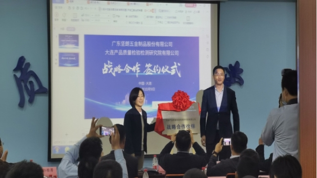 2021年10月9日大连产品质量检验检测研究院有限公司与广东坚朗五金制品股份有限公司举行了战略合作签约仪式,借助签约合作,同时召开了大连建筑门窗幕墙耐火性能研讨会。大连市门窗行业协会各会员单位、大连主要的地产公司、设计院行业技术精英拨冗出席,共享行业发展动态与技术创新理念。